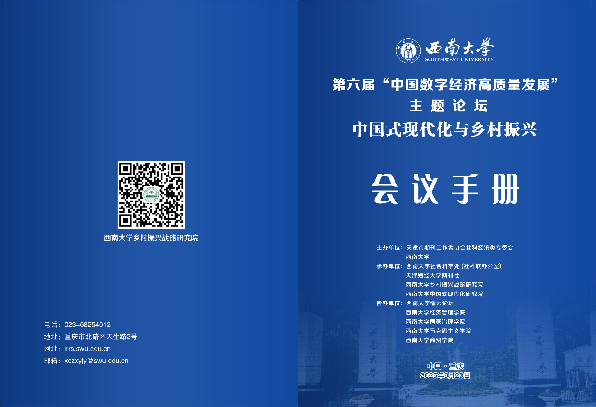 由中国数字经济高质量发展主题论坛组委会发起,天津市期刊工作者协会社科经济类专委会、西南大学联合主办,西南大学社科联、天津财经大学期刊社、西南大学乡村振兴战略研究院、西南大学中国式现代化研究院共同承办的“第六届中国数字经济高质量发展主题论坛——中国式现代化与乡村振兴”将于2025年9月20日在重庆隆重举行。我们期待您莅临会议现场,分享您的研究成果与见解,与同行专家共话数字时代乡村振兴的创新路径与发展机遇。