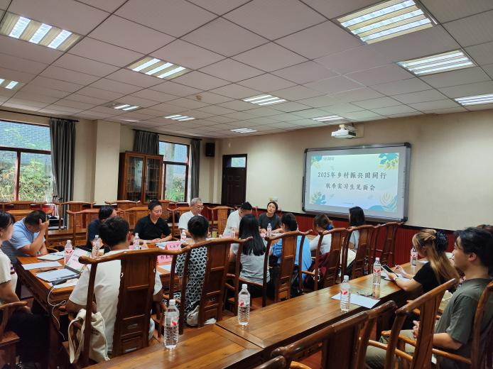 9月7日下午,我院在作孚楼二楼会议室成功举办2025年乡村振兴田间行秋季实习生见面会,标志着本期实习生活动正式拉开帷幕。出席此次见面会的嘉宾有我院执行院长肖亚成教授、副院长潘家恩教授,以及实习生接收单位的代表——重庆市巴南区东温泉镇鱼池村党委书记文承军、四川沐云文旅创始人张俊春和联合创始人肖庆。此外,往期实习生代表及全体秋季实习生也共同参与了此次见面会。