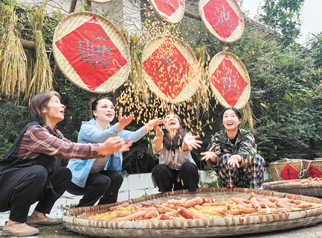 ▲巴南区东温泉镇鱼池村,村民和游客在手搓玉米趣味运动会中体验农耕文化。(资料图片)特约摄影李攀摄