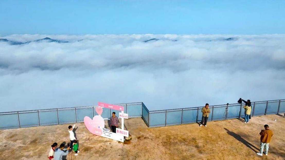▲巴南区东温泉镇鱼池村,游人打卡云海景观,乐享美好假日。(资料图片)通讯员李攀摄