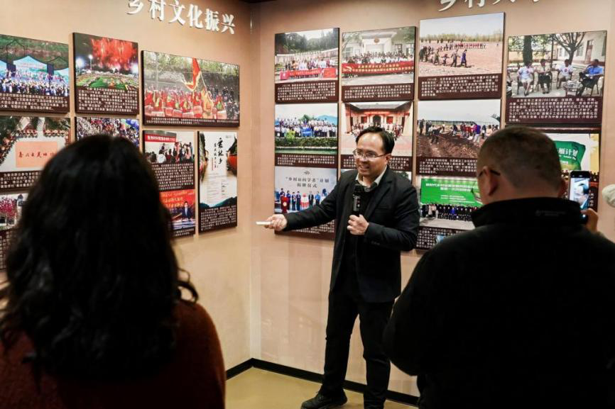展馆以“启曙——乡村建设的历史探索、奠基——新中国的农村建设、焕新——改革开放后的田野希望、振兴——新时代乡村的和美图景”及“乡村振兴的荆楚探索和荆门实践”五大板块,串联起跨越世纪的乡村记忆。在这里,参观者与历史对话:晏阳初平民教育、梁漱溟乡村自治、陶行知生活教育、张謇实业兴乡、卢作孚乡村现代化等先驱探索,定格为珍贵文献与实物;在这里,参观者与信仰同行:党领导下的减租减息、土地改革、农业合作化、家庭联产承包责任制、脱贫攻坚、乡村振兴等重大实践,铺展为波澜壮阔的历史长卷;在这里,参观者与时代共振:中央一号文件精神、五大振兴要求、共同富裕目标,转化为可看、可学、可悟的鲜活教材。学员置身其中,仿佛穿越百年时空,亲身感受一代代中国人“解民生之多艰、育天下之英才”的乡建情怀,深刻领悟“民族要复兴,乡村必振兴”的时代命题。这种可触摸、可感知、可共鸣的教学场景,让理论有温度、历史有质感、精神有力量,为干部教育培训提供了全新范式。