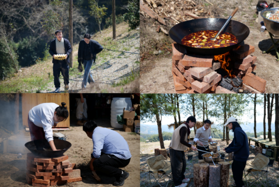 生活营是一种扎根于土地的生长,也是人与人之间真诚的链接。来自天南海北的小伙伴们组成厨师班,集体做饭,我们烹饪的场地,从四坪村戏院的门口到食光梯田的露营地,烹饪的器具从村里古朴的柴火灶到户外随手搭建的炉灶......