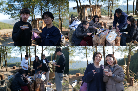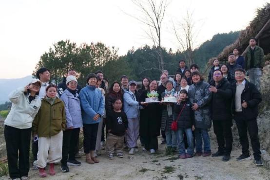 让人特别印象深刻的是在后山提前给健芝老师过生日时,一起唱生日歌,晚霞在天边落下,远处山峦墨蓝,健芝老师笑容慈爱,大家一起分享这份祝福和美好,最后在一片黑暗中,大家用手机打着灯光,共同切开蛋糕。