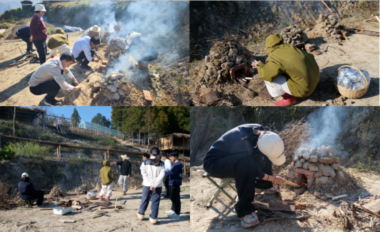 在材料上,我们准备了在四坪村周边5公里内探索发现到的五种土,包括黑土、红土、白土、紫土、黄土,还加入了更多的生态材料,包括秸秆和咖啡渣等。