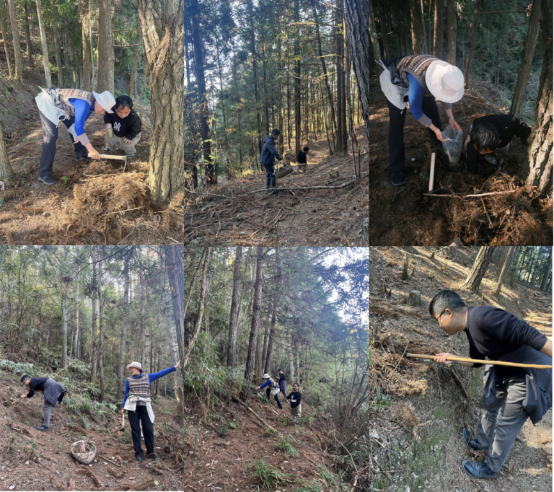 我们上山采集土著菌,就近去了后山的杉木林。刚开始那块地条件不太好,找菌有点困难,但后来还是找到了。
