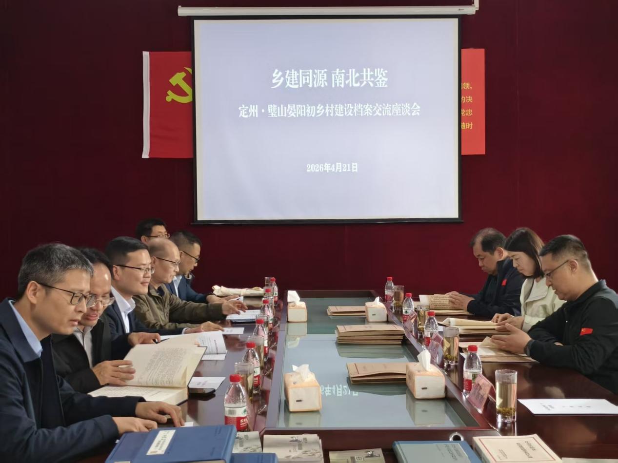 2026年4月21日,细雨绵绵,河北省定州市市委常委、宣传部部长邢佳,市文旅局局长秦鹏、市建投集团董事长张彬、东亭镇党委副书记张徐铭一行赴我院、西南大学图书馆、北碚区及璧山区,开展乡村建设专题调研。北碚区委宣传部、西南大学乡村振兴战略研究院、西南大学图书馆、中国西部科学院旧址陈列馆及璧山区档案馆相关领导陪同调研。
